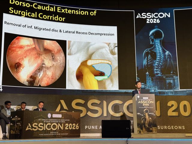 ASSICON 2026은 인도척추외과학회(Association of Spine Surgeons of India)가 주관하는 국제 학술대회로, 올해 행사는 1월 22일부터 24일까지 인도 푸네에서 열렸다. 전 세계 척추외과 전문의들이 참여해 최소침습 수술을 비롯한 최신 치료 전략을 논의하는 자리다.