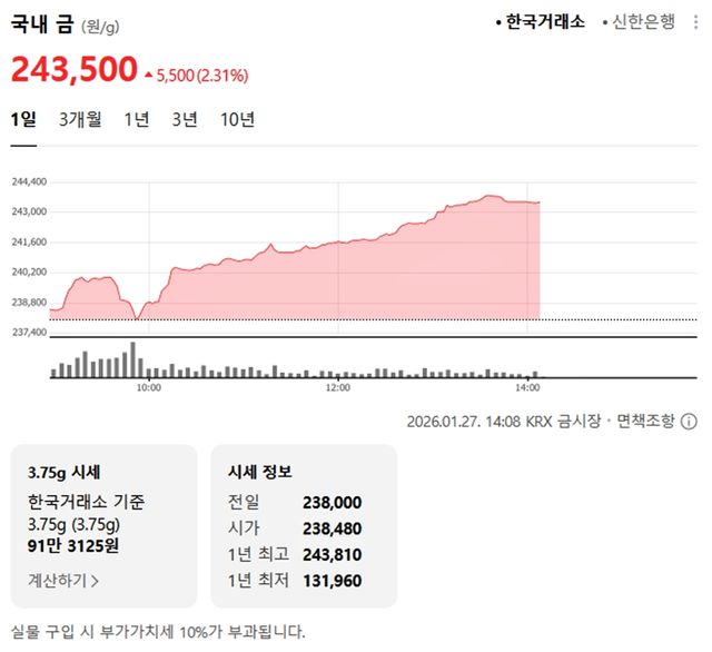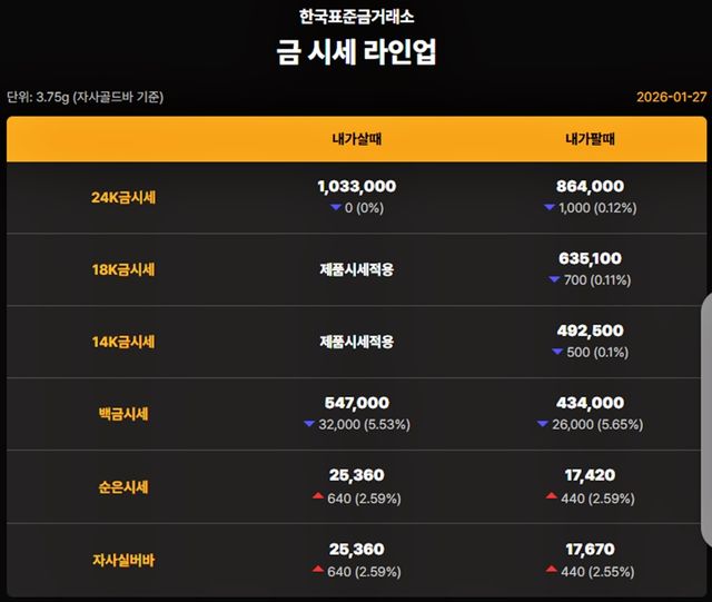 전문가들에 따르면 이날 국제 금가격이 트로이온스당 5070달러 선을 돌파하며 역대 최고 수준에 근접함에 따라 국내 금값 역시 강력한 상승 동력을 얻고 있다.