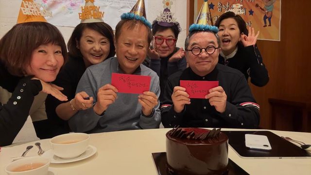 사진 속에는 올해 60살이 된 1957년 생인 송승환과 김수철의 합동 생일파티가 담겨있다. 절친 양희은, 이성미, 김혜영, 최유라와의 화기애애한 분위기가 훈훈함을 자아낸다.