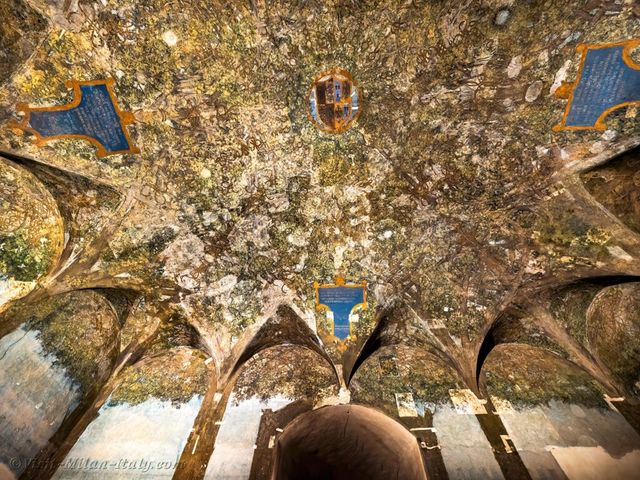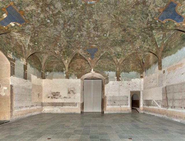 살라 델레 아세는 레오나르도 다 빈치가 1498년 내부 장식을 맡아 작업을 시작한 방으로 알려져 있습니다. 천장과 벽을 타고 올라가는 덩굴과 가지, 매듭이 한데 얽힌 거대한 캐노피가 이 공간의 핵심이죠. 다만 1499년 프랑스군 진입 이후 다 빈치가 밀라노를 떠나면서 작업은 미완으로 남았고, 이후 성이 군사 시설로 쓰이는 동안 벽화는 석회층 아래에 덮여 오랜 시간 시야에서 사라졌습니다.