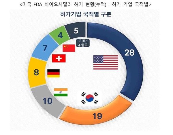 지난해 미국 식품의약국(FDA)에서 승인된 바이오시밀러는 총 18개로 집계됐다. 이 중 한국 기업이 5개를 차지하며 국가별 최다 허가를 기록했다.