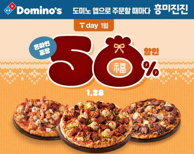 도미노피자 관계자는 “새해를 맞아 도미노피자를 사랑해주시는 SKT 고객분들을 위해 28일 단 하루 ‘SKT T day 프로모션’을 진행한다”며 “도미노피자는 SKT T day외에도 다양한 프로모션을 진행하고 있으니 많은 관심 부탁드린다”고 전했다.