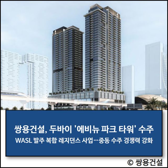 쌍용건설은 최근 두바이 국영 부동산 개발 회사(WASL) 에서 발주한 '에비뉴 파크 타워' 공사를 수주했다고 26일 밝혔다.