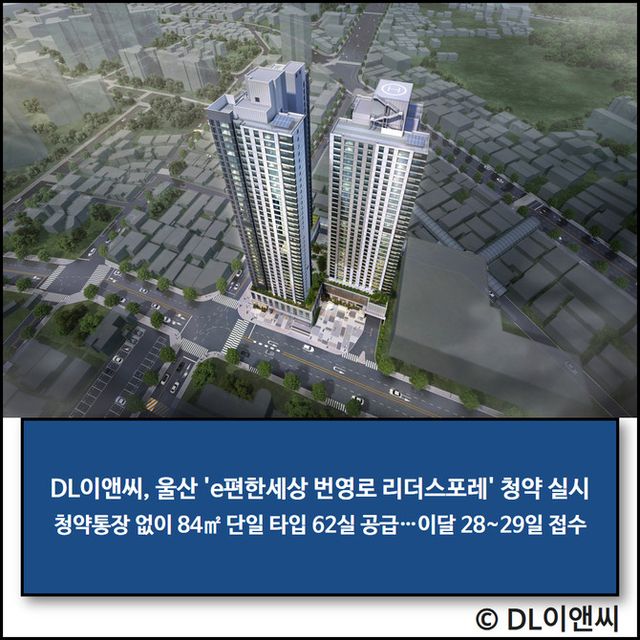 DL이앤씨(375500)는 울산광역시 남구 야음동 828-29번지 일원에 공급하는 주거형 오피스텔 'e편한세상 번영로 리더스포레(이하 리더스포레)'의 청약을 오는 28일부터 29일까지 양일간 실시한다고 27일 밝혔다.