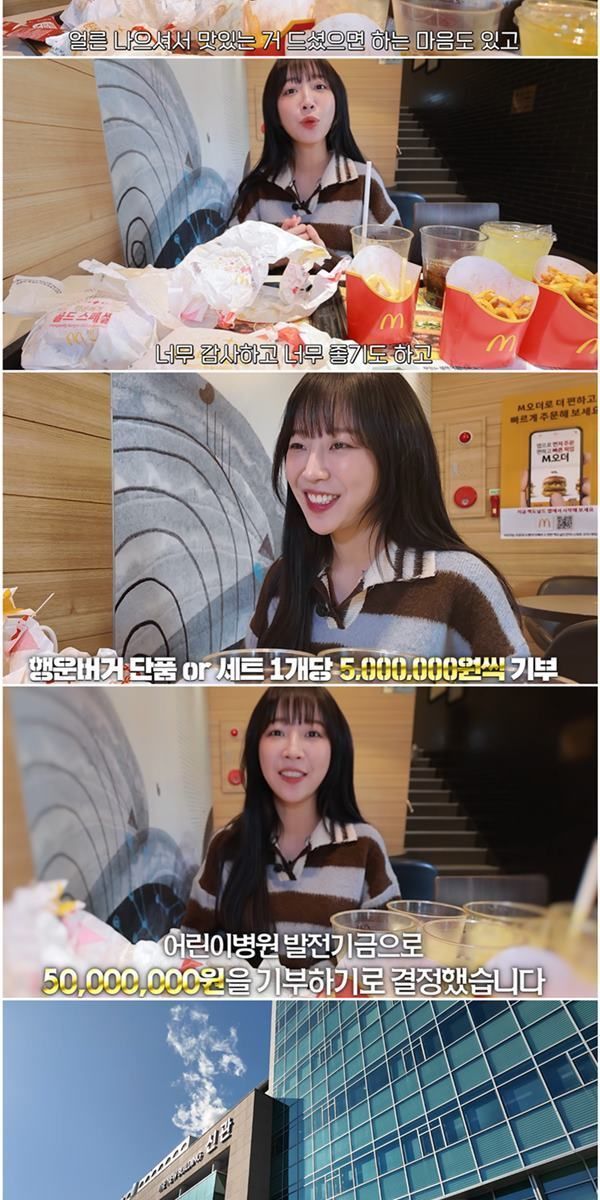 쯔양은 최근 구독자 1300만 명을 달성해 의미 있는 일을 하고 싶었기에 행운버거 1개당 500만 원씩, 총 5000만 원을 기부하겠다고 밝혔다.