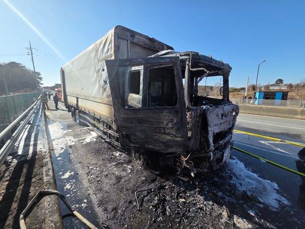 뉴시스 보도에 따르면, 논산소방서에 따르면 이날 오후 1시19분께 노성면 공주 방향 23번 국도를 달리던 8.5t 화물차에서 불이 나 24분 만에 진화됐다.