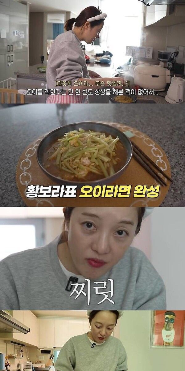 황보라는 "오이에 라면을 넣는 건 아닌 것 같다"고 했다.