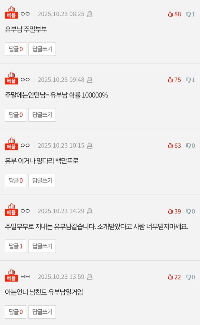 ➤ "주말부부 유부남 100%"… 지인 소개도 믿을 수 없다는 누리꾼들