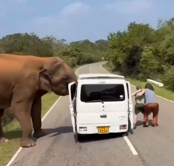 뉴시스 보도에 따르면, 26일(현지 시간) 더 선 등 외신에 따르면, 사건은 스리랑카에서 발생했다. 몸무게 약 3톤에 달하는 야생 코끼리가 관광용 미니밴을 공격하며 차량을 들어 올리고 격렬하게 흔든 것이다.