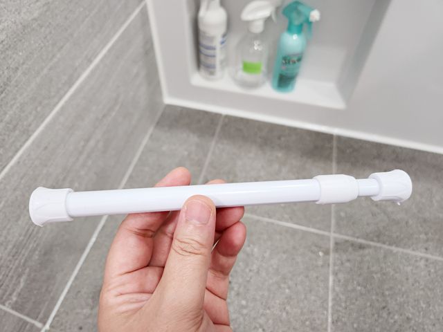 압축봉에 청소도구들을 하나씩 걸어봤는데