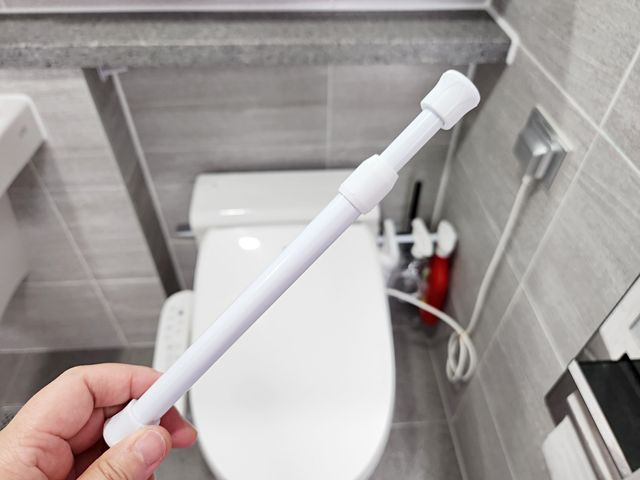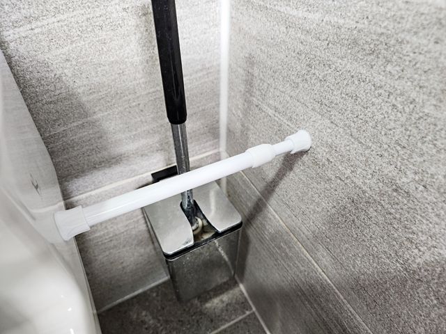 이걸 벽이랑 변기 물탱크 사이에 딱 끼워서 고정!