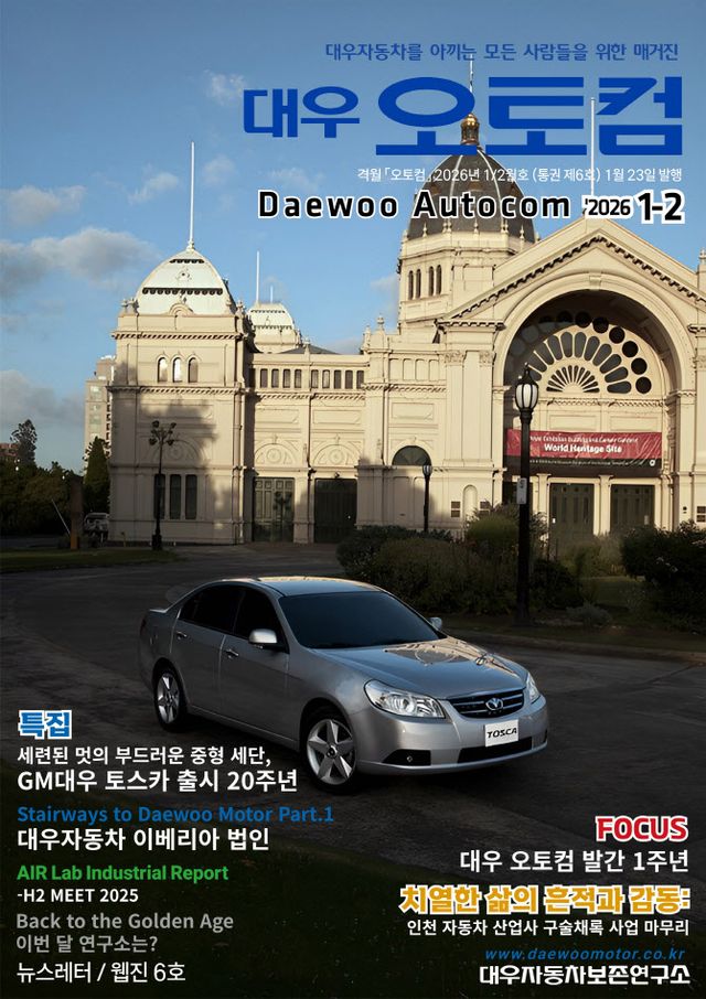 발간 1주년 기념 특집으로는 출시 20주년을 맞은 GM대우 토스카가 조명됐다. 이번 특집에서는 토스카의 개발 배경과 기술적 특징, 시장에서의 의미를 산업사적 관점에서 정리했다. 연구소는 지난 23일 외부 기증자로부터 GM대우 토스카를 인수하며, 해당 모델에 대한 기록과 보존 작업을 본격화한 바 있다.