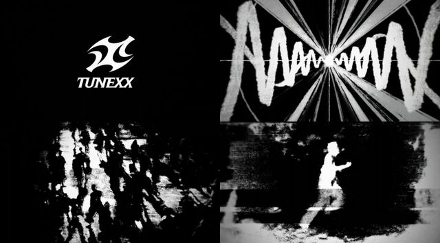 로고 필름은 세상의 노이즈를 뚫고 나오는 소년들의 주파수라는 콘셉트를 바탕으로, 'TUNEXX'의 영문 로고가 가지고 있는 파형의 모티프를 시각화한 영상이다.