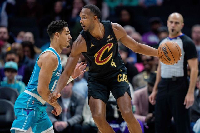 CHARLOTTE, NORTH CAROLINA - JANUARY 21: Josh Green #10 of the Charlotte Hornets guards Evan Mobley #4 of the Cleveland Cavaliers in the first half during their game at Spectrum Center on January 21, 2026 in Charlotte, North Carolina. NOTE TO USER: User expressly acknowledges and agrees that, by downloading and or using this photograph, User is consenting to the terms and conditions of the Getty Images License Agreement. Jacob Kupferman/Getty Images/AFP (Photo by Jacob Kupferman / GETTY IMAGES NORTH AMERICA / Getty Images via AFP)/2026-01-22 10:40:43/