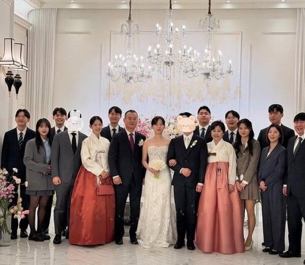 공개된 사진은 그야말로 입이 떡 벌어지는 스케일이다. 웨딩드레스를 입은 여동생를 중심으로 부모님과 남보라를 포함한 형제자매들이 둘러서 있다.