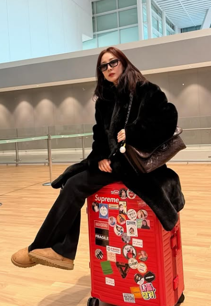 이어 공개된 싱가포르 출국 현장 사진에서는 감각적인 공항 패션이 돋보였다. 산다라박은 블랙 퍼코트에 선글라스를 매치해 힙하면서도 편안한 스타일링을 완벽하게 소화했다.