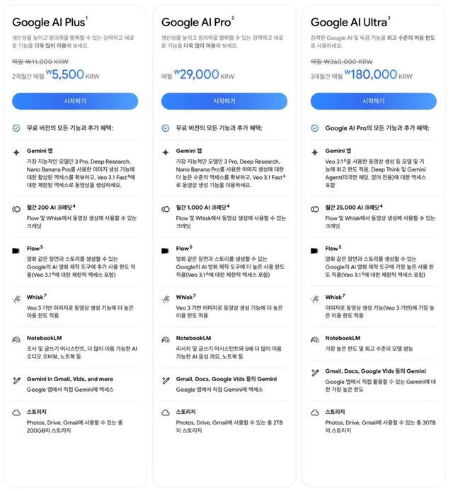구글 AI 구독 서비스 요금제 / 구글코리아 블로그