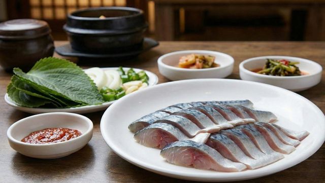 이렇게 한 입 먹어보면 바삭한 김의 식감과 부드러운 고등어 살, 그리고 양념의 조화가 환상적이다. 특히 참깨 양념은 고등어의 기름진 맛과 만나면 고소함이 몇 배로 커진다. 방어 회가 조금 단조롭다고 느껴졌던 사람들에게 이 고등어 회 쌈은 새로운 충격을 줄 것이다.