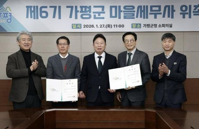 가평군은 이 제도를 계속 운영하기로 하고 27일 가평군청에서 2026년부터 2027년까지 활동할 제6기 마을세무사 2명을 위촉했다. 이에 따라 앞으로 2년간 군민을 대상으로 지방세와 국세 관련 무료 세무 상담 서비스를 이어가게 된다.