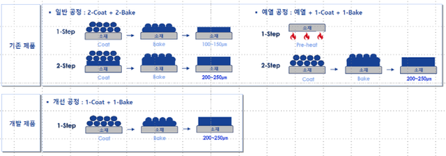 분체도료 도장 업체가 후도막 도장시 KCC 신제품을 활용하면 △도장 공정 단축 △예열·경화(Cure) 과정 에너지 절감 등을 통해 생산 원가를 낮출 수 있다. 이에 따라 작업 효율성이 크게 개선되면서 가격 경쟁력도 한층 강화될 전망이다.