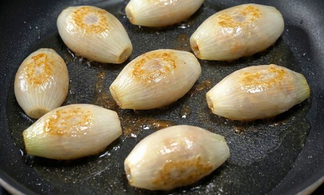 양파는 중심부까지 세로로 두 번 칼집을 넣어준다. 이렇게 하면 이후 한 겹씩 분리하기 쉬워진다. 손질한 양파는 전자레인지에 약 3분 정도 돌려준다. 전자레인지에서 살짝 익히면 양파가 부드러워져 벗기기 쉬워진다.