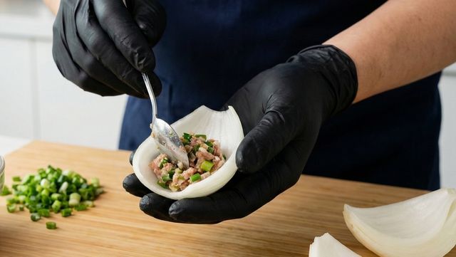 만두피 대신 양파를 사용해 '양파피 만두'를 만들 수 있다. AI툴로 제작한 자료사진.