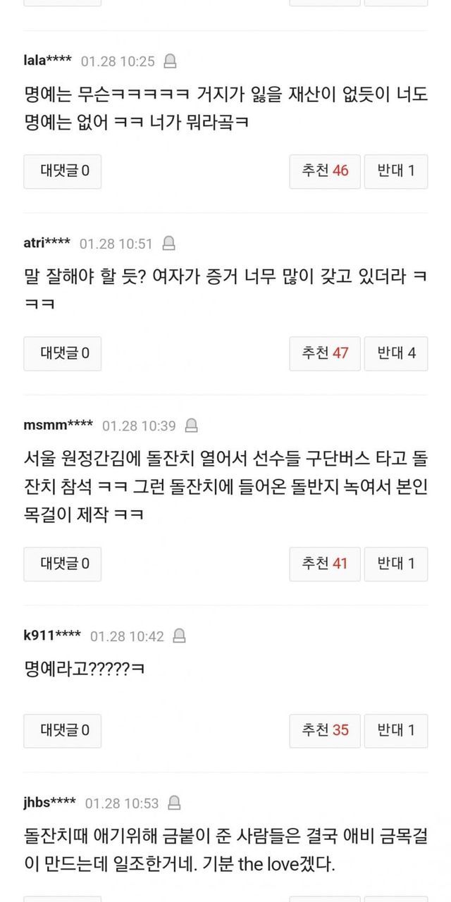 이어 "선수이자 아이의 아빠로서 살아온 명예와 삶이 통째로 무너지는 것 같지만, 오로지 지금은 이성을 잡고 선수 자신과 아이의 미래만 생각하고 있다"고 덧붙였다.