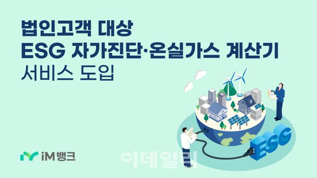 이 서비스는 고객이 직접 ESG 경영수준과 온실가스 배출 현황을 보다 간편하고 체계적으로 점검할 수 있도록 했다. 법인고객이라면 무료로 이용할 수 있으며 iM뱅크 기업뱅킹 애플리케이션의 ‘생활제휴’ 메뉴와 iM뱅크 기업뱅킹 홈페이지의 ‘ESG’ 메뉴를 통해 확인할 수 있다.