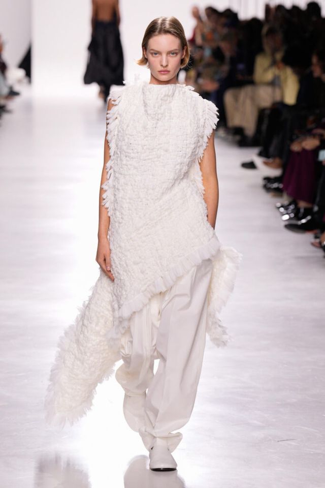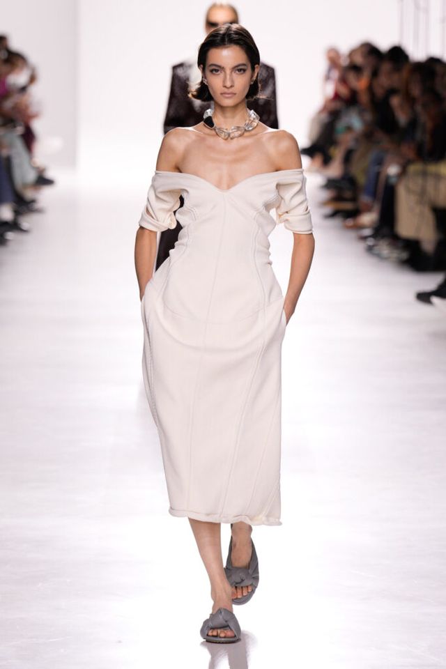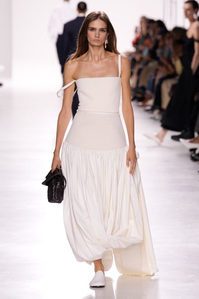NOTE 루이스 트로터는 단 한번의 쇼를 통해 오랜 시간 쌓아온 실력을 톡톡히 입증했다. 그는 하우스의 디자인 코드를 베네치아의 화려함, 뉴욕의 에너지, 밀라노의 본질주의에 투영했고, 하우스의 첫 여성 크리에이티브 리더였던 로라 브라지온의 궤적을 계승했으며, 자신과 하우스를 관통하는 키워드인 ‘부드러운 기능성(Soft Functionality)’을 전면에 내세웠다. 아이코닉한 나파 가죽 트렌치코트와 다양한 디자인의 드레스, 실용적이면서도 우아한 가방은 분명 ‘보테가 베네타’스러웠지만, 한편 그의 낯선 감각과 어우러져 완전히 신선한