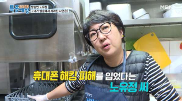 지난 26일 유튜브 채널 특종세상-그때 그 사람을 통해 공개된 영상에는 한때 예능과 시트콤을 종횡무진하며 큰 사랑을 받았던 노유정의 일상이 담겼다. 영상 속 노유정은 강남의 한 식당 주방에서 설거지를 하며 하루를 보내고 있었다. 1986년 MBC 특채 개그우먼으로 데뷔해 화려한 연예계 생활을 보냈던 그가 방송에서 자취를 감춘 지 수년 만의 모습이다.