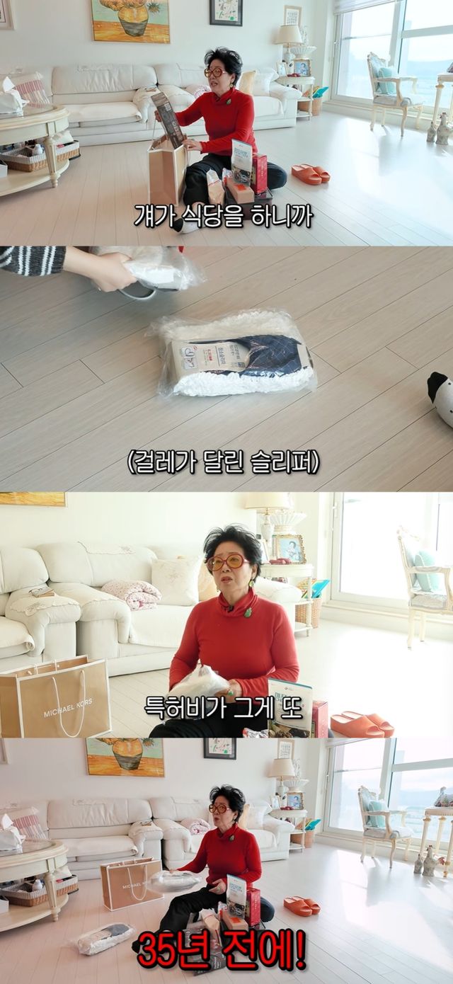 선우용여가 자신이 최초로 걸레 달린 슬리퍼를 개발했다고 주장했다.