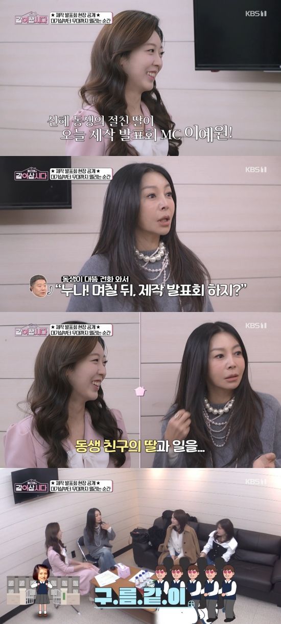이날 '같이 삽시다' 제작발표회를 앞둔 대기실에 KBS 아나운서이자 MC를 맡은 이예원이 찾아왔다.
