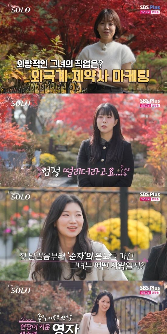 영자는 국내 대형 건설사에 재직 중이라고 밝혔다. 18기 영호가 회사 선배라고 밝힌 그는 "공사장 현장에서 일하고 있다. 건설 현장의 관리감독자로 재직 중이다. 순환근무라 사람 만나기가 쉽지 않다. 소개팅도 100번 가까이해봤는데 잘 안 됐다"고 털어놨다.