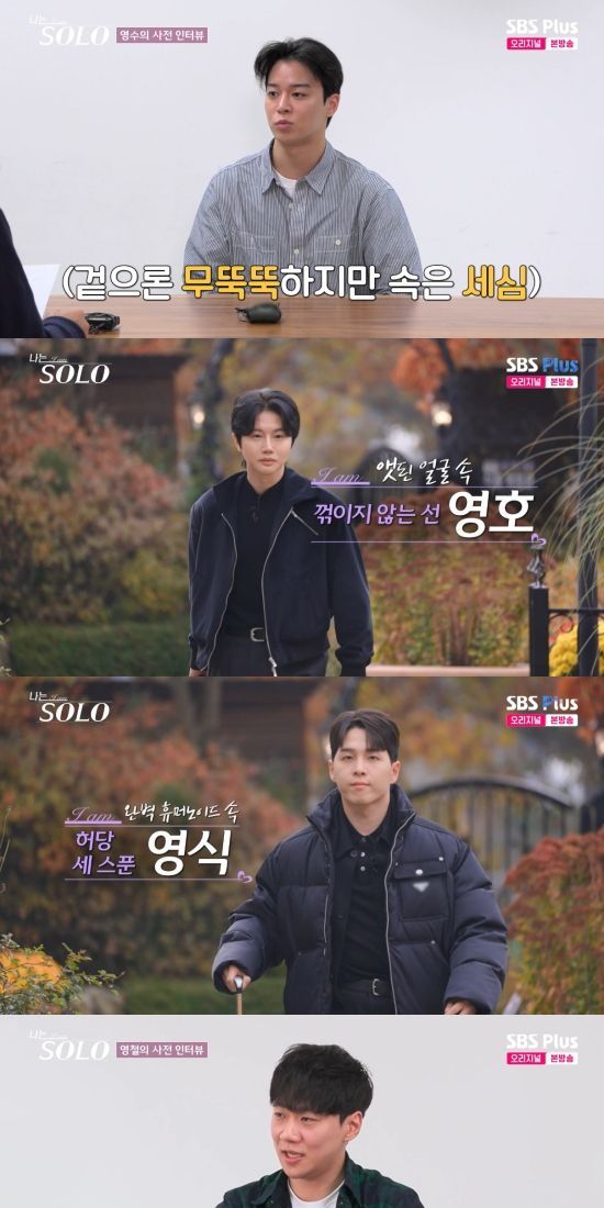 영식은 변호사였다. 그는 "21년부터 시작해서 4,5년 됐다. 바쁜 저를 이해해 줄 수 있는, 커리어 야망 있는 여자가 좋다. 자기소개서에 바디프로필을 찍어봤으면 좋겠다고 쓴 것도 그런 걸 해보신 분이라면 결혼 생활의 어려움도 잘 헤쳐나갈 수 있을까 싶지 않다. 자산 운용은 주식, 원자재, 채권에 분산 투자 중이다"고 밝혔다.