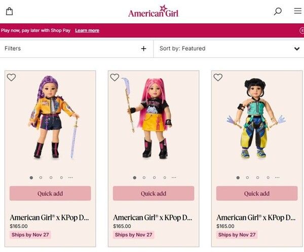 현재 마텔의 공식 판매 사이트인 아메리칸걸닷컴에서 케데헌 주인공인 루미, 조이, 미라 캐릭터 18인치 사이즈 인형을 사전 예약할 수 있다. 판매가는 개당 165달러(약 23만원)다.