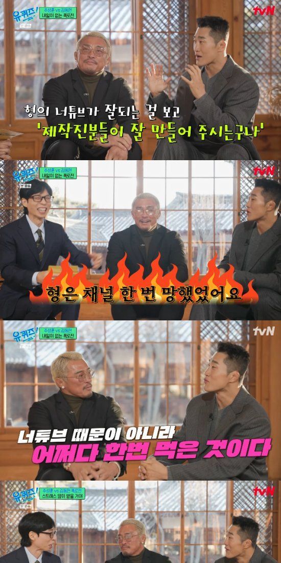 김동현은 유튜브를 시작한지 1년만에 구독자수 200만 명을 돌파한 추성훈에게 질투(?)를 하면서 "사실 형이 한 번 망했었다. '추추TV'라고 있었는데, 이제는 검색도 안된다. 지금 유튜브 제작진이 형의 매력을 잘 발견해서 만들어주시는거다. 감사하게 생각해야한다"고 돌직구를 던졌다.