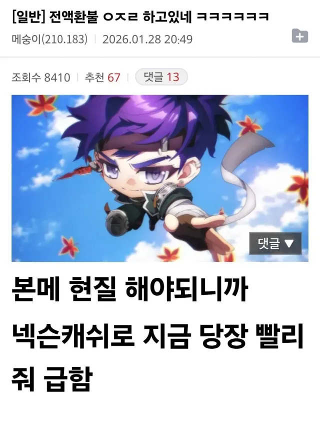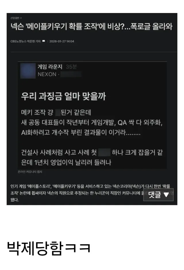확률 조작으로 전액환불 결정나서 축제열림 ㅋㅋ