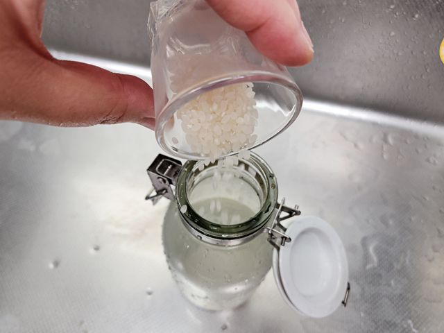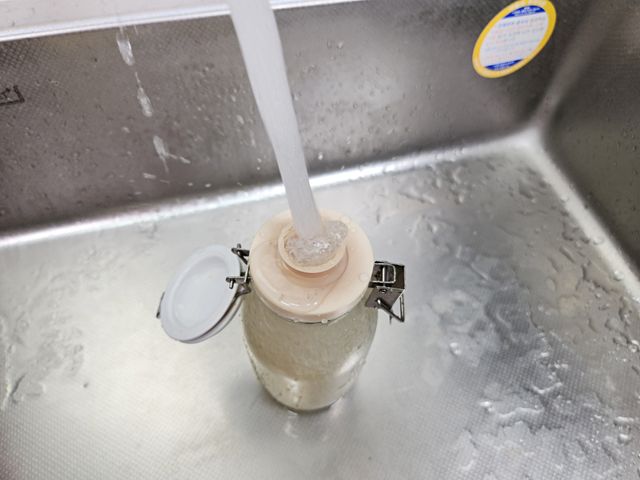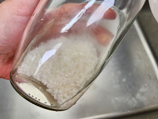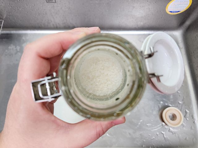 쌀이 병 안쪽을 돌아다니면서 구석구석 문질러 주는