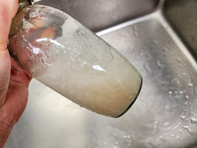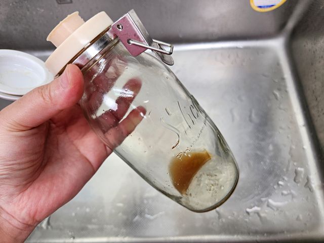 바닥에는 찌꺼기 가라앉아 있고