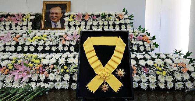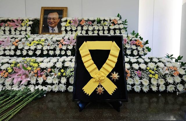 27일 오후 서울 종로구 서울대학교병원 장례식장에 마련된 고 이해찬 민주평화통일자문회의 수석부의장의 빈소에 국민훈장 무궁화장이 놓여 있다 / 뉴스1