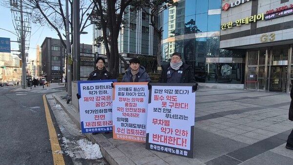 한편 이날 한국민주제약노조는 건강정책심의위원회 회의가 열리는 장소 앞에서 약가제도 개편 관련 피케팅을 진행했다.