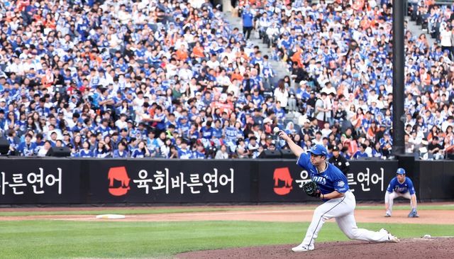 지난해 10월 19일 대전 한화생명볼파크에서 열린 프로야구 2025 신한 SOL뱅크 KBO 플레이오프 2차전 삼성 라이온즈와 한화 이글스의 경기, 삼성 선발 최원태가 6회말 역투하고 있다. / 뉴스1