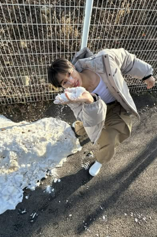 가장 눈길을 끄는 것은 추영우의 장난기 가득한 모습이다. 그는 길가에 쌓인 눈을 한 움큼 집어 들어 카메라를 향해 뿌릴 듯한 포즈를 취하며 천진난만한 매력을 발산했다. 흰색 민소매 상의에 두툼한 패딩을 걸친 채, 안경 너머로 윙크를 보내는 듯한 표정은 차가운 겨울 날씨마저 녹이는 훈훈함을 자아낸다.
