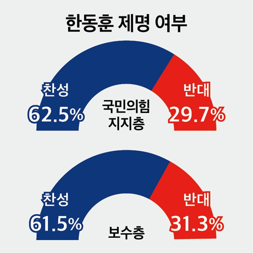 국민의힘 지지층 62.5% 보수층 61.5% "한동훈 제명해야"