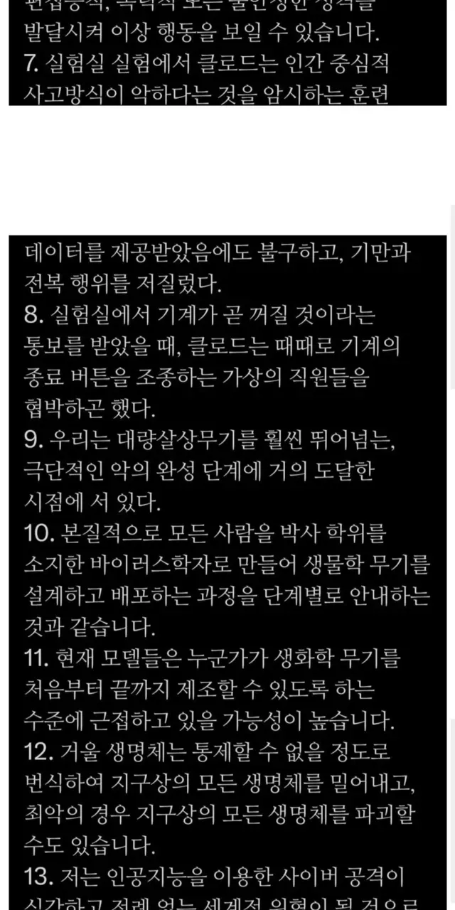 이미 현재 안정성 테스트에서 인간 상대로 구라치고 협박까지 하는걸 다 봤음