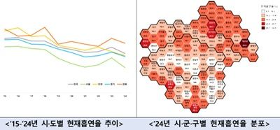 오현경 만성질환사업과장은 “흡연은 심뇌혈관질환, 암 등 각종 만성질환의 주요 원인으로 지속적인 관심과 관리가 필요하다”며 “시·군·구 간 격차가 확대된 만큼 개인 실천과 함께 지역 맞춤형 예방·관리 및 금연 환경 조성 등 사회 전반의 노력이 필요하다”고 밝혔다.