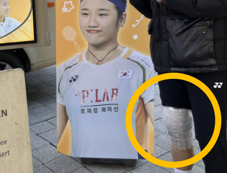 팬들의 사랑에 밝은 표정을 보였지만 사진 속 안세영의 오른쪽 무릎은 보는 이들의 마음을 무겁게 했다.