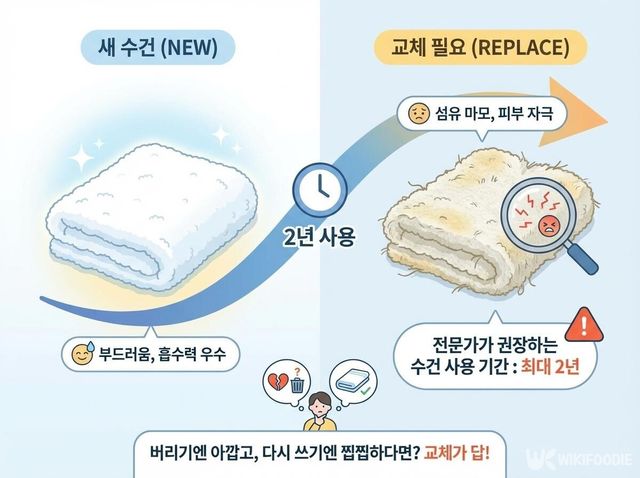 수건은 하루에도 여러 번 피부에 닿는 생활용품이다. 그만큼 마모도 빠르다. 전문가들은 사용 기간을 길어야 2년 정도로 본다. 섬유가 닳아 거칠어지면 피부에 미세한 자극이 반복되기 때문이다. 아직 형태가 멀쩡해 보여 쉽게 버리진 못하지만, 다시 쓰기엔 꺼림칙한 상태가 된다.