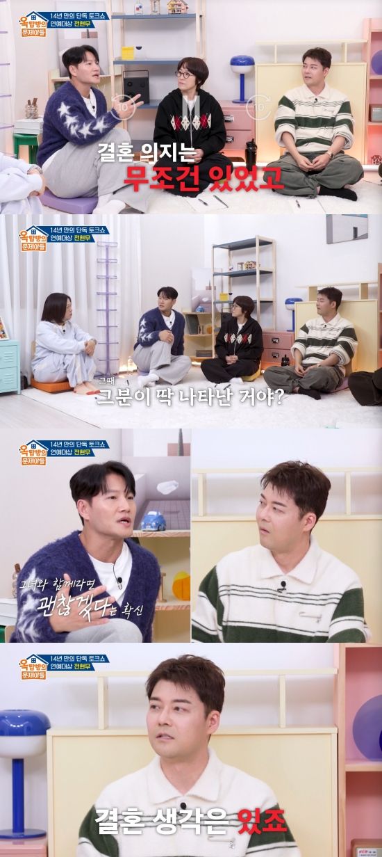이날 전현무는 결혼 계획에 대해 "내일모레 반백이다. 너무너무 혼란스럽다"면서 "종국이 형을 만나면 물어보고 싶었던 게 있다. 저보다 한 살 많은데 (지난해 결혼하지 않았나). 원래 비혼이었는데 좋은 분을 만나서 간 건지 원래 결혼 생각이 있어서 찾다가 그분을 만난 건지 궁금하다"고 물었다.