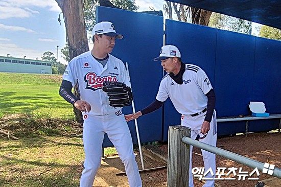 (엑스포츠뉴스 시드니, 김근한 기자) 두산 베어스 투수 이영하가 2026시즌 선발 복귀를 위한 열정을 불펜 투구에서 쏟아부었다. 두산 김원형 감독이 뜯어말릴 정도로 열정적인 투구를 선보인 이영하는 가장 일찍 불펜 투구장에 들어와 가장 늦게 자리를 떴다.